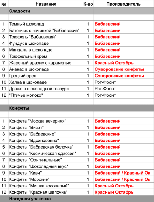1. Проверить, можно ли внести изменения в состав подарка. Если нет, то скорее всего наборы были собраны еще летом из конфет, произведенных еще раньше